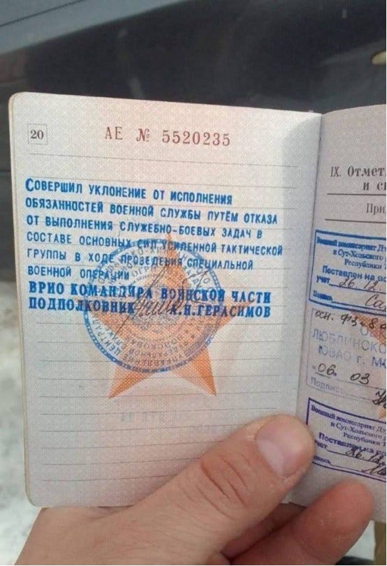 Elsewhere, there are more “I’m a bad soldier I refused to fight in Ukraine” stamps showing up in RF service member pay books, image attached.