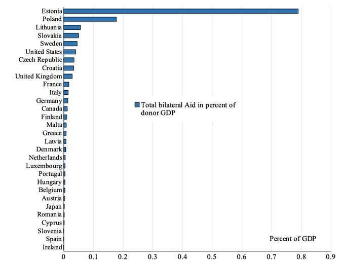 I’ll close with some economics graphics. The pie chart is weapons sales to Russia by nation. France is blue, Germany is green. The bar graphic is financial support to Ukraine relative to GDP.
