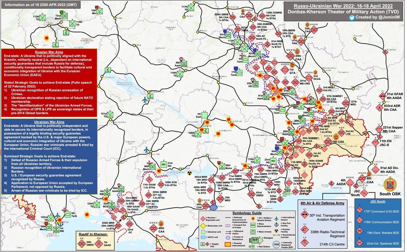 April 20 — Day 56 — Easter offensive, Mariupol end game (maybe), lots of talk about weapons