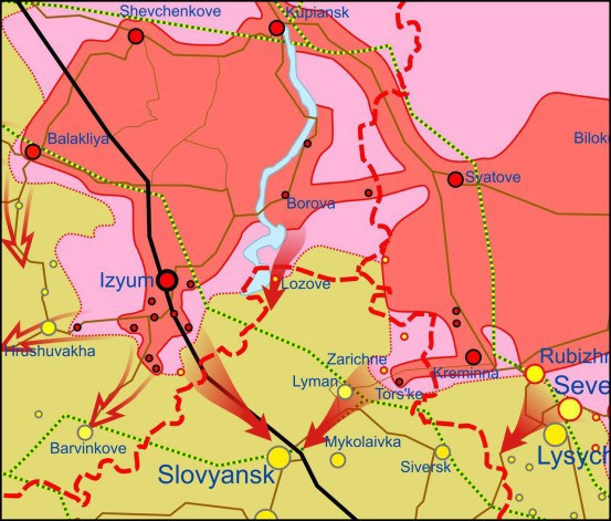 The second hard push seems to be south of Izium. UAF reports said RF formations attacked or fired lots of artillery in the direction of the villages Suligovka and Dibrivne, but did not advance south from there. Along with the JominiaAtWar map I’ve attached two close-ups of the Severodonetsk and Izium sectors, so hopefully that’s enough graphics to make understandable all the place names and directions.