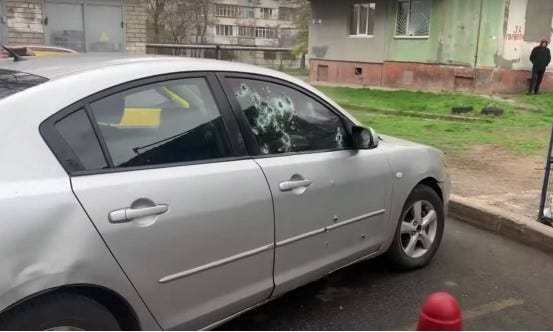 Perhaps not the most significant incident of the day, but possibly the most foreshadowing, took place in Kherson. There, in an apartment parking lot, an unknown assailant or assailants unloaded a full Kalashnikov magazine through the windows of Mazda sedan, behind the wheel of which was sitting Valeriy Kuleshov. A pro-Moscow blogger, he had been cooperating with RF forces occupying Kherson. He died on the spot. The Kherson “police” are conducting an investigation, while the Ukrainian media and blogosphere are reporting it was partisans. Long-term readers of this review may recall we predicted more murders like this. Picture of shot-up car and victim (while still alive) attached.